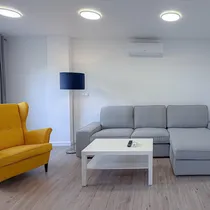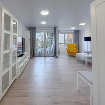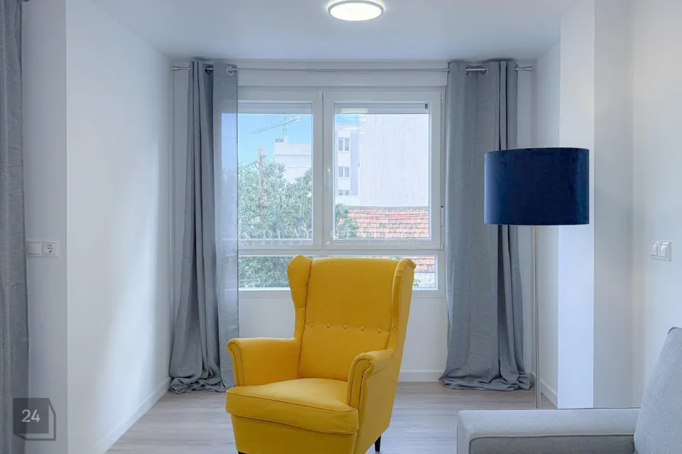 Nautige valgusküllaseid ja päikeselisi interjööre tänu lõunapoolsele orientatsioonile, kõrgetele lagedele ja suurtele topeltklaasitud alumiiniumraamidega akendele. Korteris on ka parkettpõrandad, valgeks lakitud siseviimistlus ja avar privaatne terrass, mis sobib ideaalselt lõõgastumiseks või meelelahutuseks.
