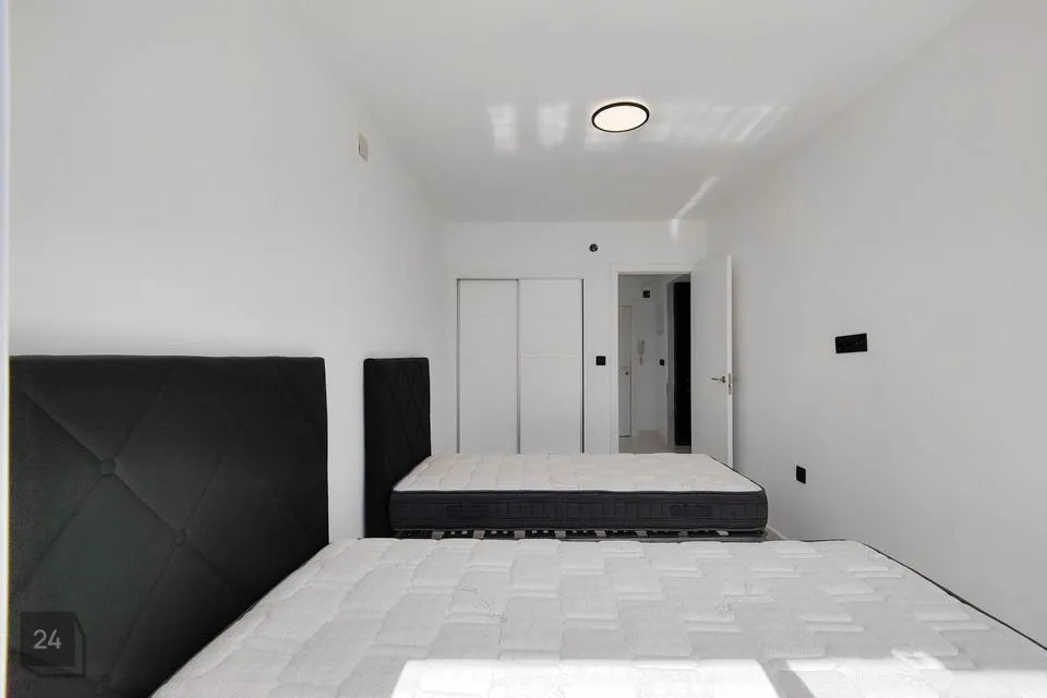 Completely renovated - including new electrical and plumbing - the apartment is ready to move into immediately. There are two spacious bedrooms with built-in wardrobes and access to the terrace, two bathrooms with modern showers and a bright living-dining room connected to a stylish new kitchen. Both bedrooms and the terrace have a wonderful southerly orientation, ensuring plenty of natural light throughout the day. The terrace has clear views of the communal swimming pool, ideal for watching children.