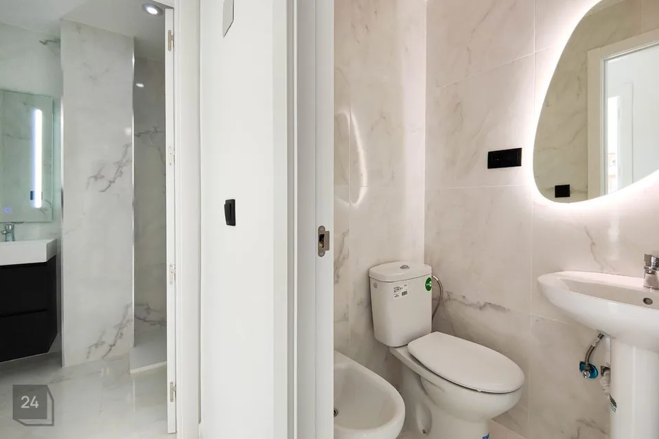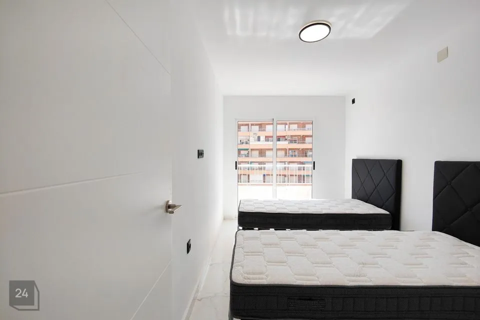 Discover this beautifully renovated apartment in Rocío del Mar, Punta Prima, Torrevieja. This home is located in a well-maintained building with two lifts, covered parking for residents and a large communal swimming pool with lifeguard, offering both comfort and practicality.