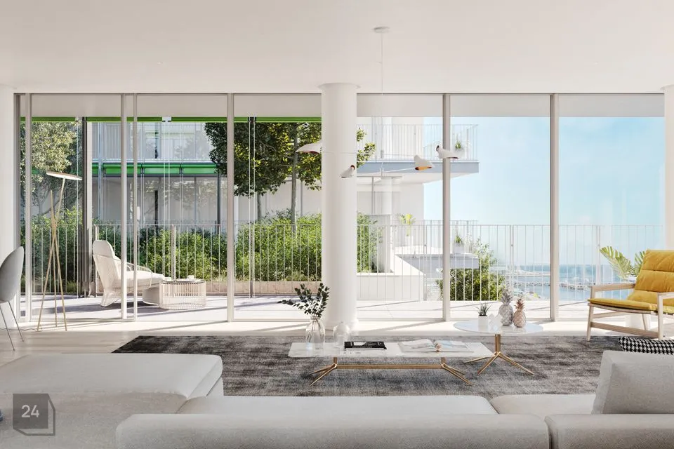 The project has been designed to provide residents with a practical, functional and at the same time sophisticated lifestyle. The apartments here are available in a variety of layouts, from studios (T0) to four-room (T4), with several options for distributing the space. All the buildings are conveniently located around the central square of the area, creating a sense of community and easy access to all amenities. The apartments are designed in a modern architecture with an Italian accent, featuring premium finishes, space optimization, natural light, thermal and sound insulation, and high energy efficiency all year round. Each building has a private parking with charging stations for electric cars and individual storage rooms. Elegant panoramic elevators from 'Schmitt + Sohn' open up to the common garden, emphasizing the atmosphere of coziness and exclusivity.