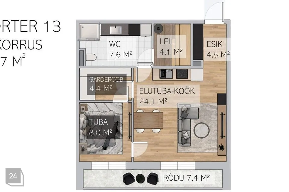 Müüa valgusküllane ja avara planeeringuga 2-toaline korter, kus on avatud köök koos elutoaga ning üks eraldi magamistuba. Korter asub maja kolmandal korrusel ning selle juurde kuulub ka mõnusalt suur 7,4 m² rõdu ja üks kindel parkimiskoht. Lisaks kuulub korteri juurde 2,8 m² suurune panipaik – ideaalne koht hoiustamiseks.