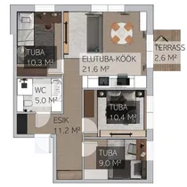 Müüa valgusküllane ja avara planeeringuga 4-toaline korter, kus on avatud köök koos elutoaga ning kolm eraldi magamistuba. Korter asub maja esimesel korrusel ning selle juurde kuulub ka 2,6 m² suurune terrass ja üks kindel parkimiskoht. Lisaks kuulub korteri juurde 2,8 m² suurune panipaik – ideaalne koht hoiustamiseks.