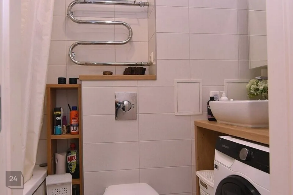 Vannitoas vann, wc ning valamunurk töötasapinnaga, mille alla saab paigutada pesumasina. Olemasolev pesumasin ei jää sisse või siis kokkuleppel.
