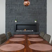 Просторная и светлая гостиная с биокамином и открытой кухней – идеальное место для семейных вечеров и приема гостей.