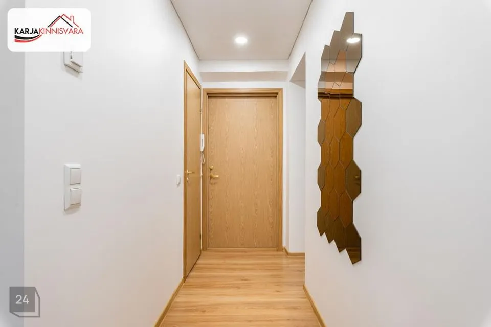 Korterit on pärast renoveerimist kasutatud minimaalselt, mistõttu saab uus omanik nautida tõeliselt uut kodu. Tööde käigus on vahetatud kõik aknad, sise- ja välisuksed, vee- ja kanalisatsioonitorustik, elektrijuhtmestik ning elektrikilp. Kasutatud on ainult kvaliteetseid viimistlusmaterjale: seinad on kaetud neutraalsetes toonides värviga, põrandaid katab elegantne parkett. Kõikides tubades on pinglagi.