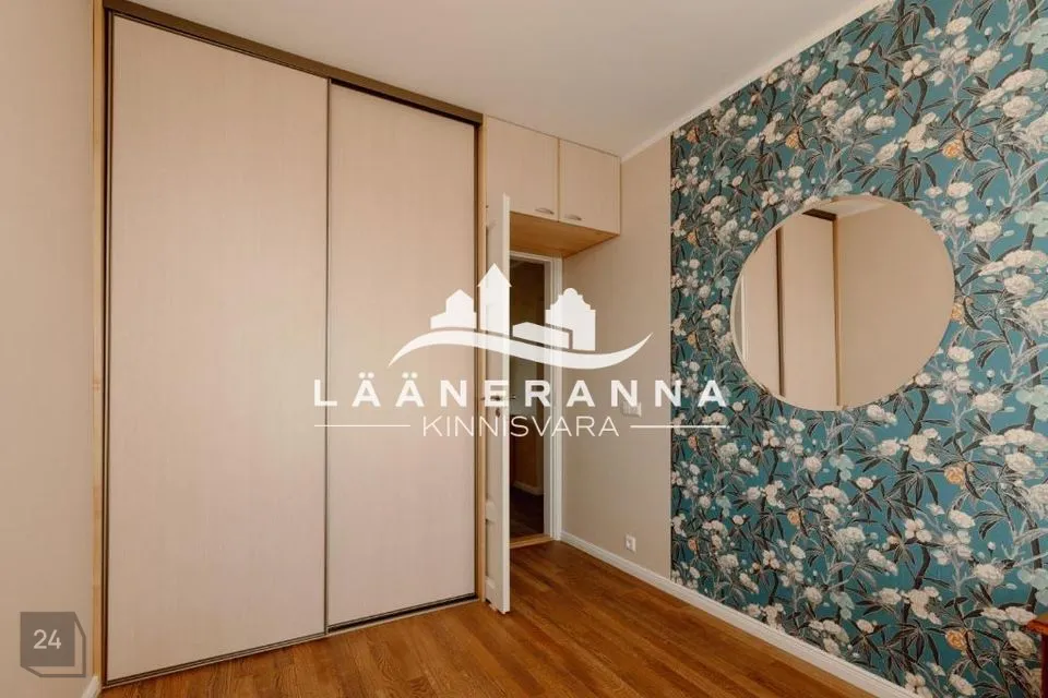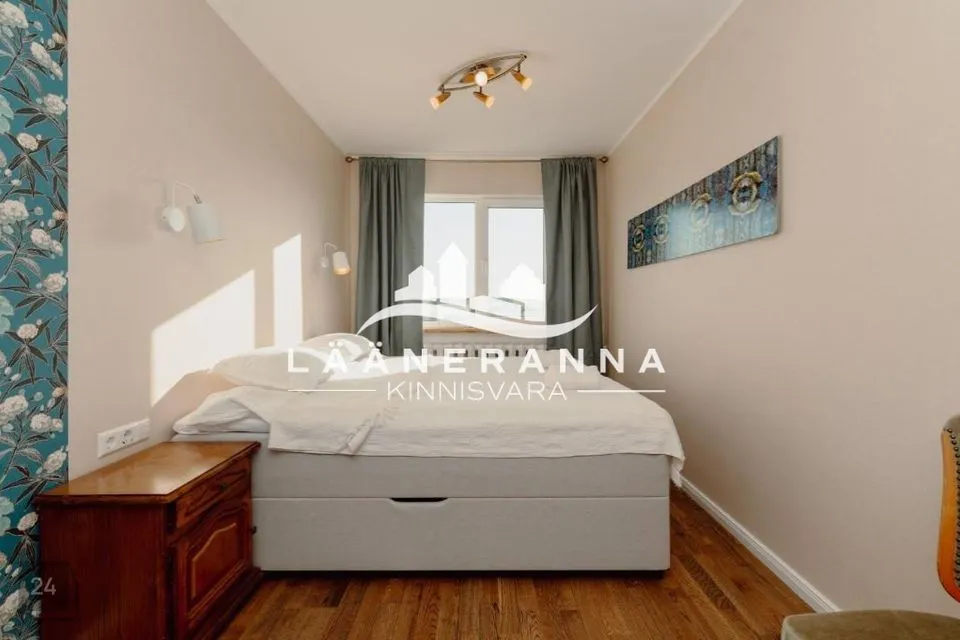 Korter asub maja viiendal korrusel. Põrandakatteks on naturaalne parkett. Seinad on viimistletud värviga ja tapeediga. Magamistoas on mahukas lükandustega kapp ja kontinentalvoodi . Elutuba on maitsekalt sisustatud,korralik diivan-voodi jääb uuele omanikule. Köögimööbel tehnikaga jääb samuti uuele omanikule.