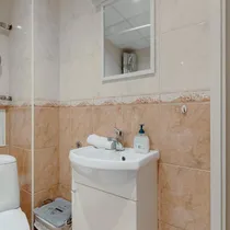 Vannituba/wc on kaetud kahhelplaadiga.