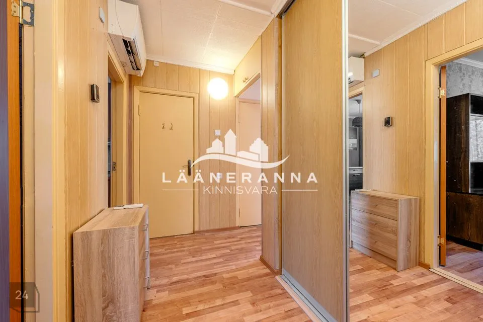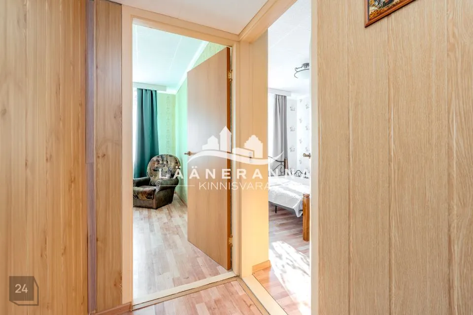 Korter asub maja esimesel korrusel ja kõik toad on läbi maja planeeringuga. Esikus on mahukas lükandustega kapp, kuhu mahuvad pere üleriided ja jalanõud.