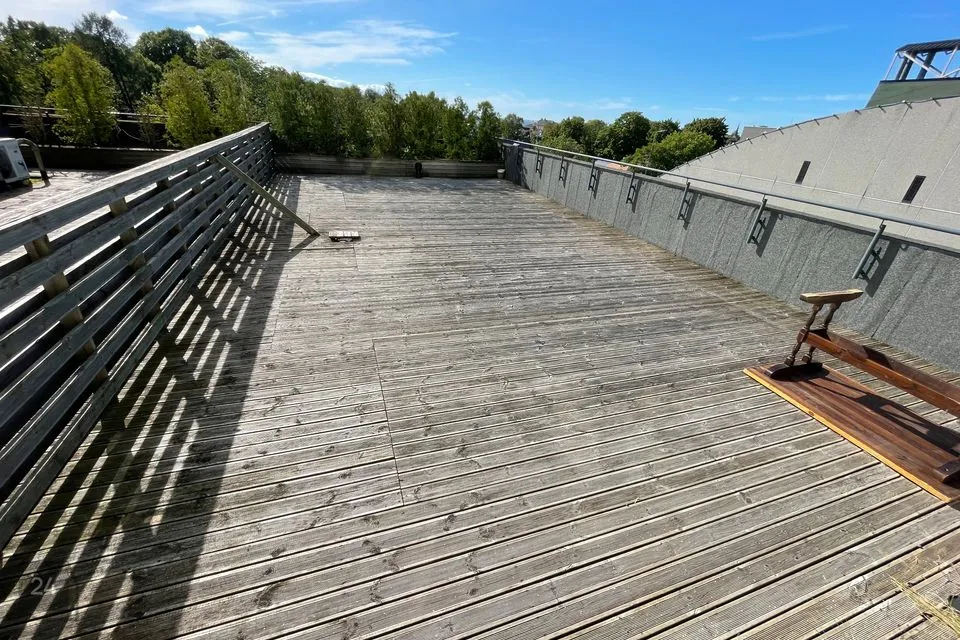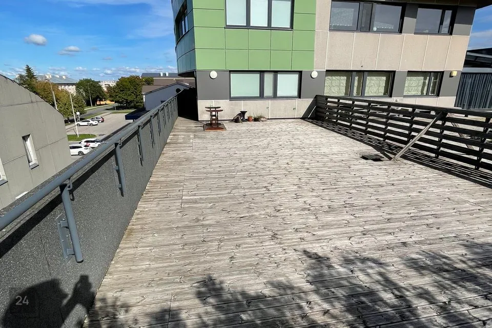 Müüdav korter on 39m2 ja asub III korrusel. Avatud planeeringuga esik - elutuba - köök, dushiruum, leiliruum, WC. Leiliruumis elektrikeris. Korteris suur katuseterrass (94,9m2)pääsuga nii elutoa poolt kui ka dushiruumi poolt. Põrandatel naturaalne parkett, seinad värvitud, sanitaarruumi seinad ja põrandad on plaaditud. Korteris korralik köögimööbel koos tehnikaga. Korter on remontivajav. Korteri juurde kuulub ka maja all asuv panipaik.