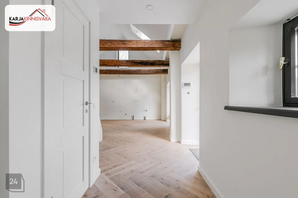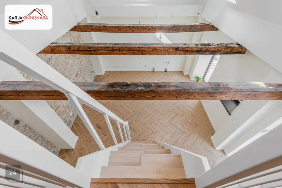 Müüdav korter asub kivist abihoones ja on läbi kahe tasapinna. Aknad jäävad vaatega sisehoovi. Korteri koosseisu kuulub avatud planeeringuga köök-elutuba, magamisosa II korrusel, wc/duširuum ja küttega talveaed.