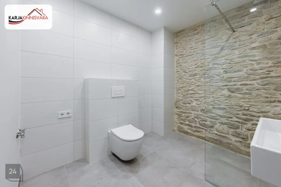 Kasutatud on looduslikke, ruumide sisekliimat positiivselt mõjutavaid ehitusmaterjale: kivi ja puitu. Ruumid on heledates toonides, sanitaartehnika ja plaadid kvaliteetsed (tarnijateks Vitra ja Plaadimaailm).