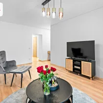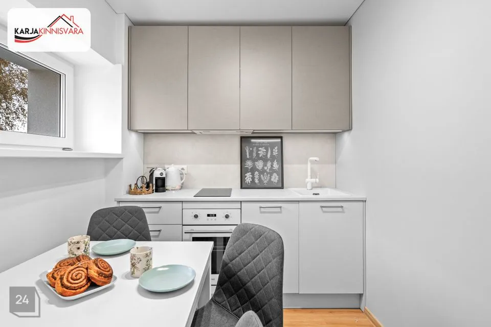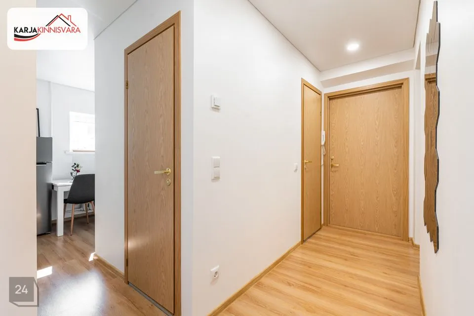 Korter on pärast põhjalikku renoveerimist jäänud vähe kasutusse – uus omanik saab nautida kodu, mis on sisuliselt uueväärne. Tööde käigus on uuendatud kõik: aknad, sise- ja välisuksed, vee- ja kanalisatsioonitorustik, elektrijuhtmestik ning elektrikilp. Viimistluses on kasutatud neutraalseid ja ajatu stiiliga materjale: heledad toonid, Vecta Design OÜ poolt on paigaldatud pinglaed ja naturaalne parkett loovad harmoonilise ja hubase interjööri.