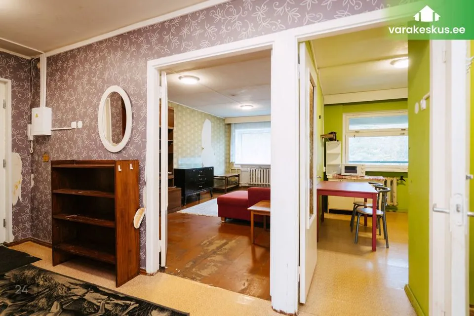 Korteris on esik, elutuba, kaks magamistuba, köök, vannituba ja WC. Kõik ruumid paiknevad eraldi ning kõikidesse ruumidesse pääseb otse esikust. Lisaks on köögi ees rõdu (3 m2), millele pääseb elutoast. Elutoast ja rõdult avaneb vaade kaunile männimetsale.