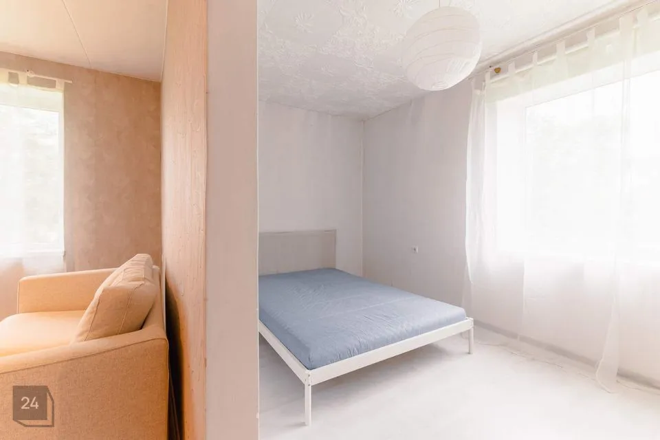 Parkimine maja ees. Läheduses kauplus, aapteek ja bussipeatus.