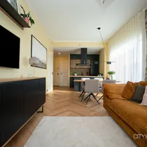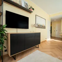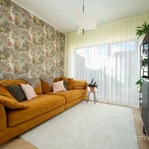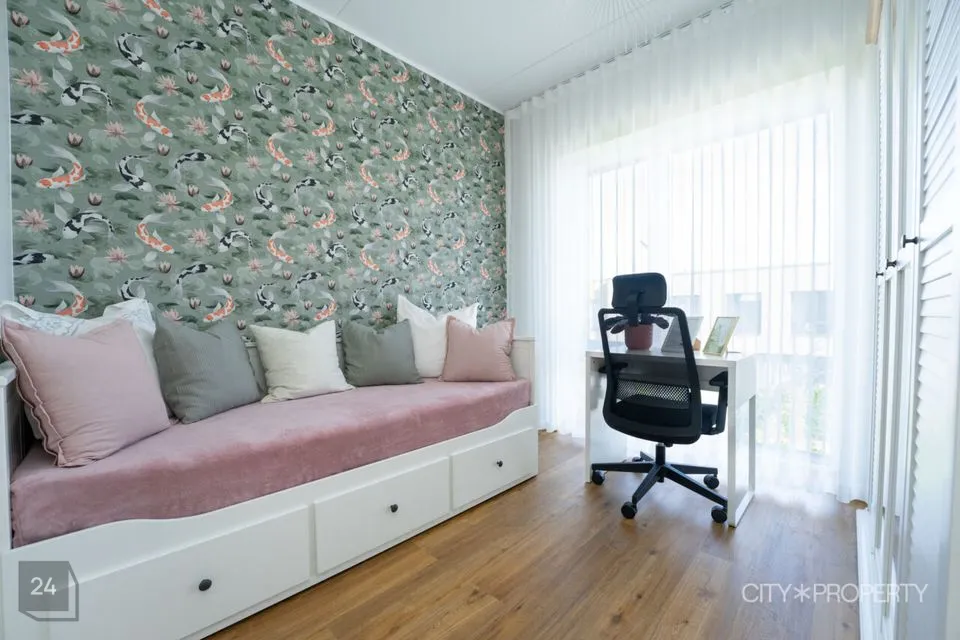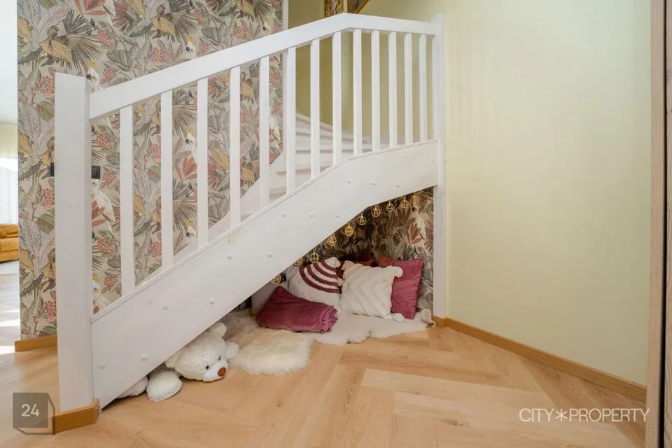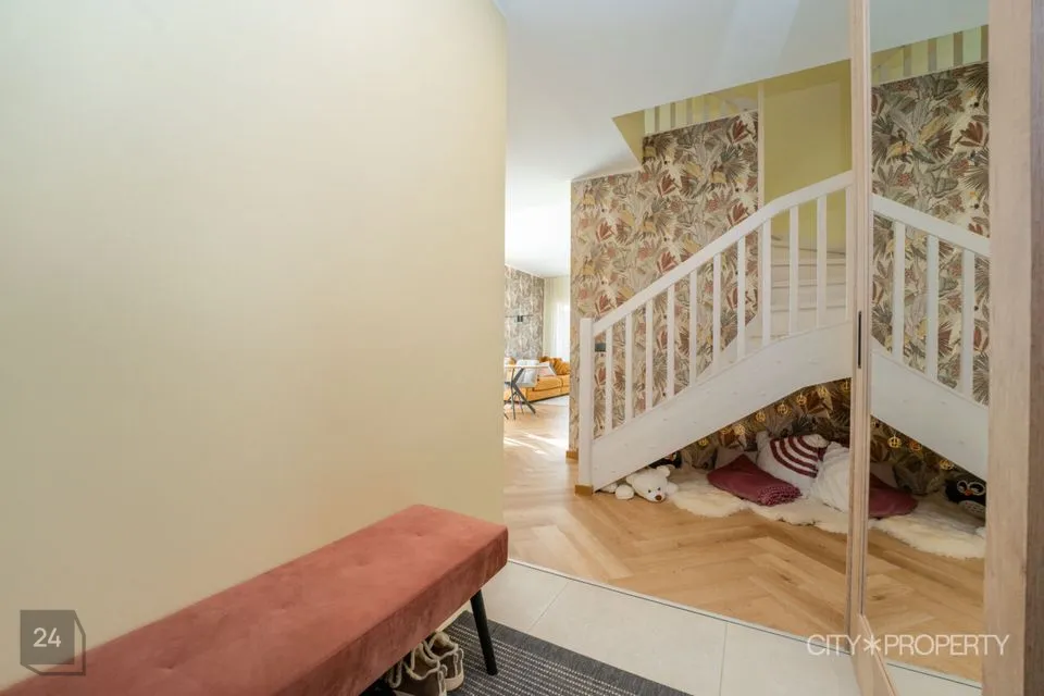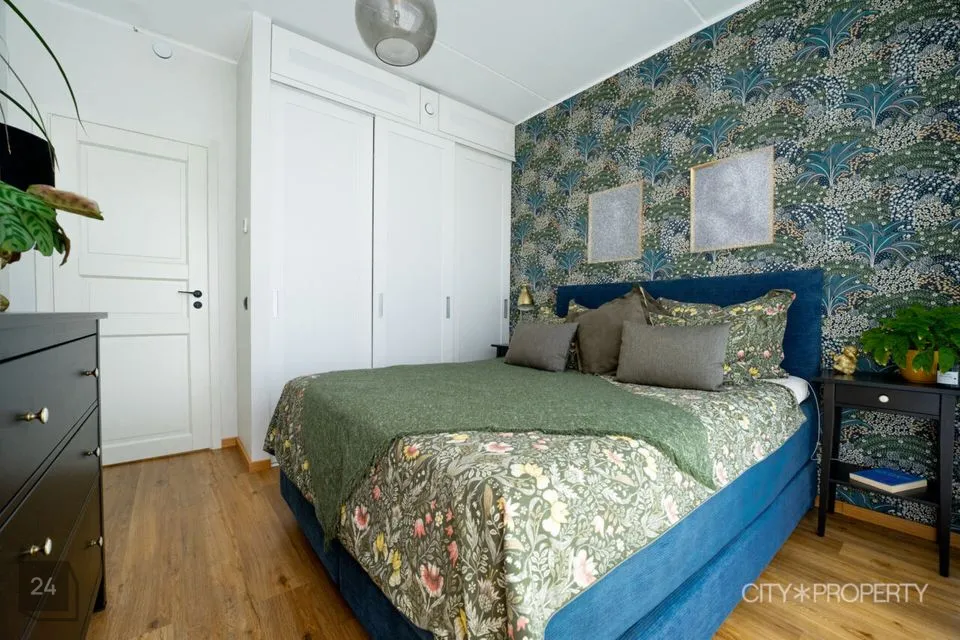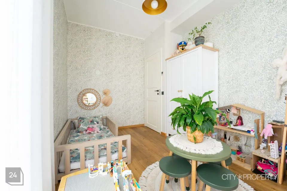 Kodu on läbimõeldult ja isikupäraselt sisustatud. Maast laeni aknad lasevad tuppa rohkelt loomulikku valgust, muutes ruumid helgeks ja avaraks. Eluruumide põrandatel on LVT-parkett, esiku põrand on plaaditud. Korterile lisavad karakterit kõrged laed. 3-kordse klaaspaketiga aknad tagavad hea soojus- ja helipidavuse. Korteris on valvesüsteemi kaabeldus, ühenduspunkt on lastetoas ja lepingu saab soovi korral uuele omanikule üle anda.