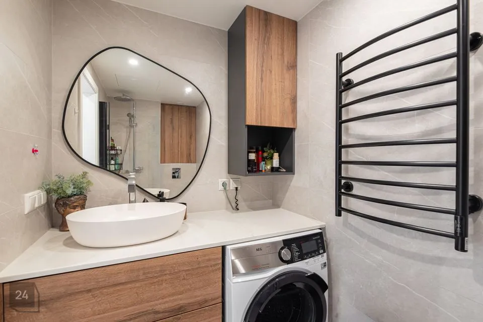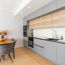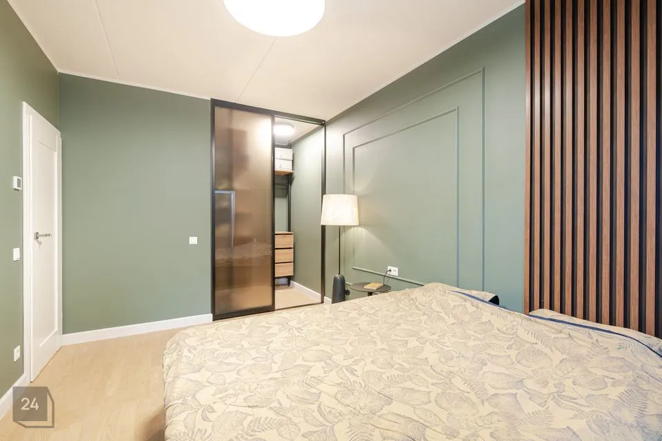 Korteri ruumide vaheseinad on ehitatud plokkist, mis annab ka ruumide vahel rohkem helivastupidavust kui kergseinad. Kõikides ruumides on Dever kärgkangaga voldikkaardinad mis on head soojusisolaatorid, magamistubades on pimendavad voldikkaardinad. Köögis on Electrolux sisseehitatud tehnika, kus induktsioonipliit ja kubu on Hob2Hood funktsiooniga, ehk toiduvalmistamise ajal kubu kontrollib pliidi aktiivsust ja teab millal on hetk sisse-väljalülituda ja kuidas väljatõmmet reguleerida. Valgustid on Hektor Light. Köögimööbel, vannitoamööbel, walk-in garderoob on eritellimusel valmistatud sisseehitatud mööbel.