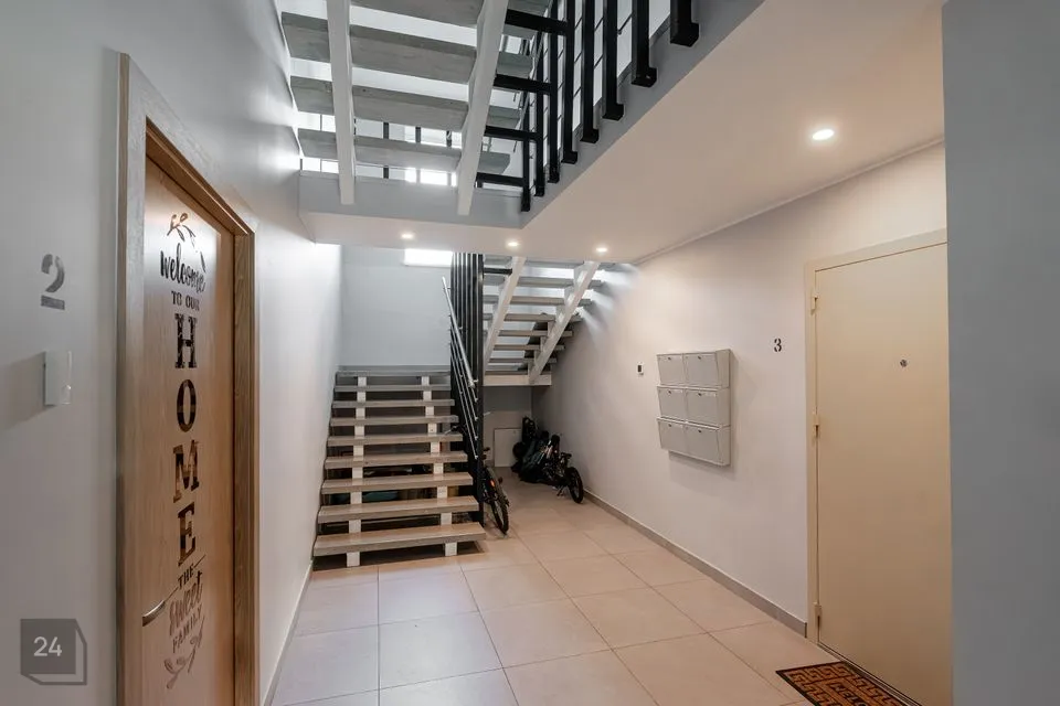 Korter asub 2.korrusel 3-korruselise maja ning on eraldatud üldtrepikojast tuletõke metallist uksega, mis annab rohkem turvalisust ja vaikust, sest summutab kõik trepikoja helid. Läbimõeldud maja planeering tagab vaikuse ka elamu sees.