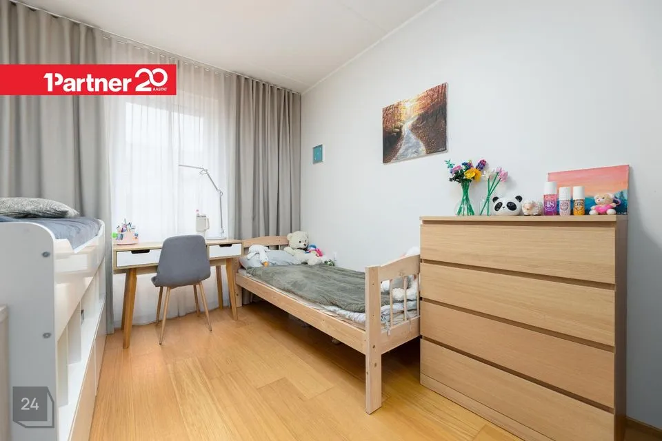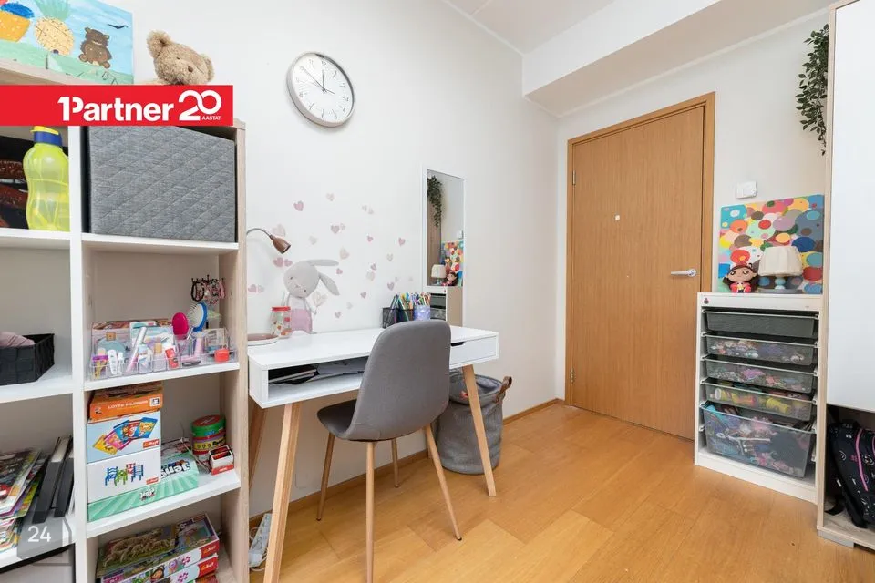 Funktsionaalse planeeringuga korter asub mugaval, hoone teisel korrusel. Esik on meeldivalt avar ja varustatud suure sisseehitatud garderoobikapiga. Korteri südameks on ruumikas avatud planeeringuga köök-elutuba, kust avaneb pääs ka rõdule. Kolm magamistuba asetsevad eraldiseisvatena.