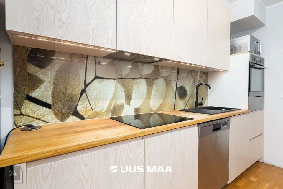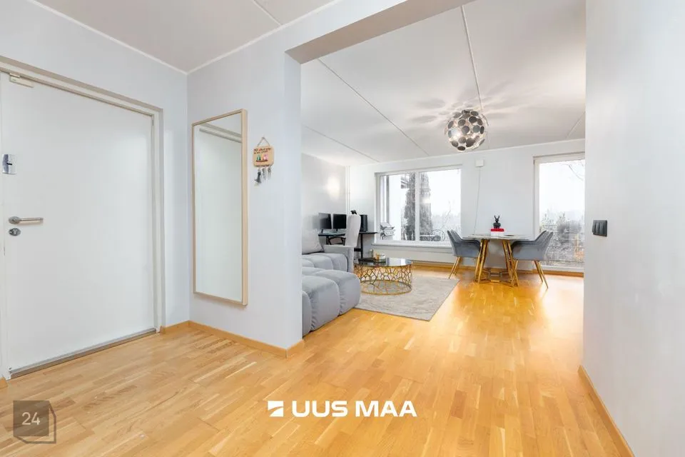 Elutuba: Avar, valgusküllane ja avatud planeeringuga elutuba on jagatud funktsionaalselt puhke- ja söögialaks. Ruumist avaneb mitme akna kaudu vaade rohelusse. Korteri põrandaid katab ühtlane ja soe naturaalne puitparkett, mis loob hubase atmosfääri.