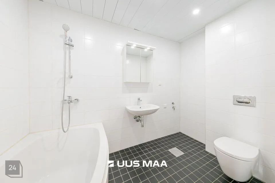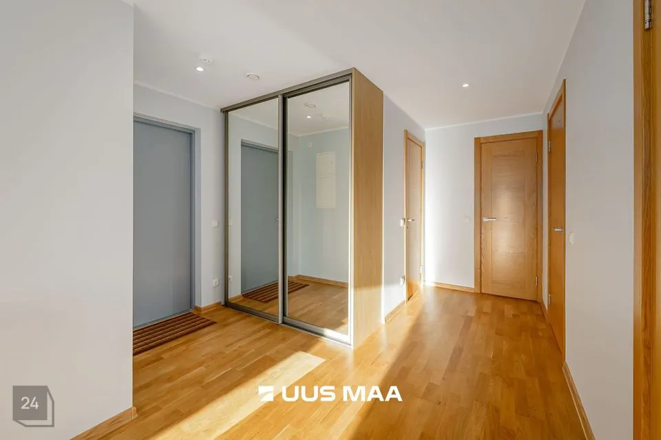 Põrandaid katab kvaliteetne puitparkett, vannituba on plaaditud ja on reguleeritava elektrilise põrandakütega.