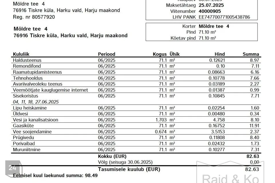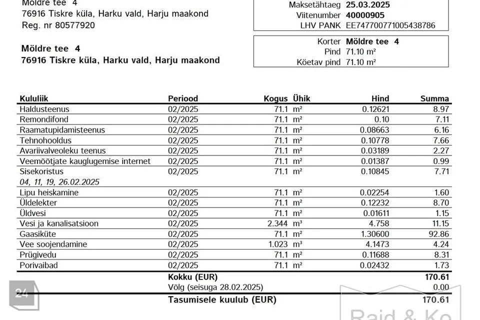 Korteriühistu arved on olnud suvel 80 ja talvel kuni 170 eur/kuu.