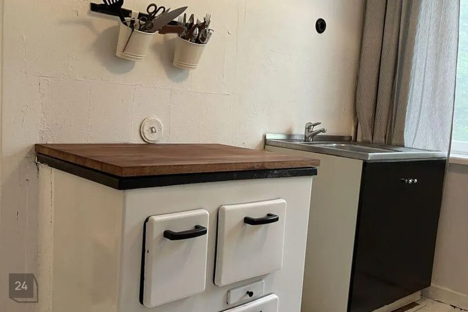 Kütmiseks on ahi ja puuküttel pliit, lisaks el. radiaatorid.