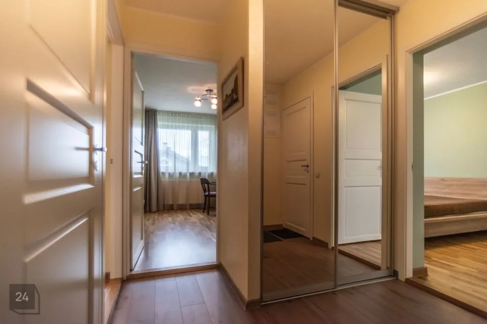 Köök on sisustatud kaasaegse tehnikaga ning avar elutuba sobib suurepäraselt nii perega ajaveetmiseks kui külaliste võõrustamiseks. Korteril on kaks eraldi magamistuba, esik ning renoveeritud vannituba ja WC. Lisaks on sisse ehitatud mahukas garderoobiruum.