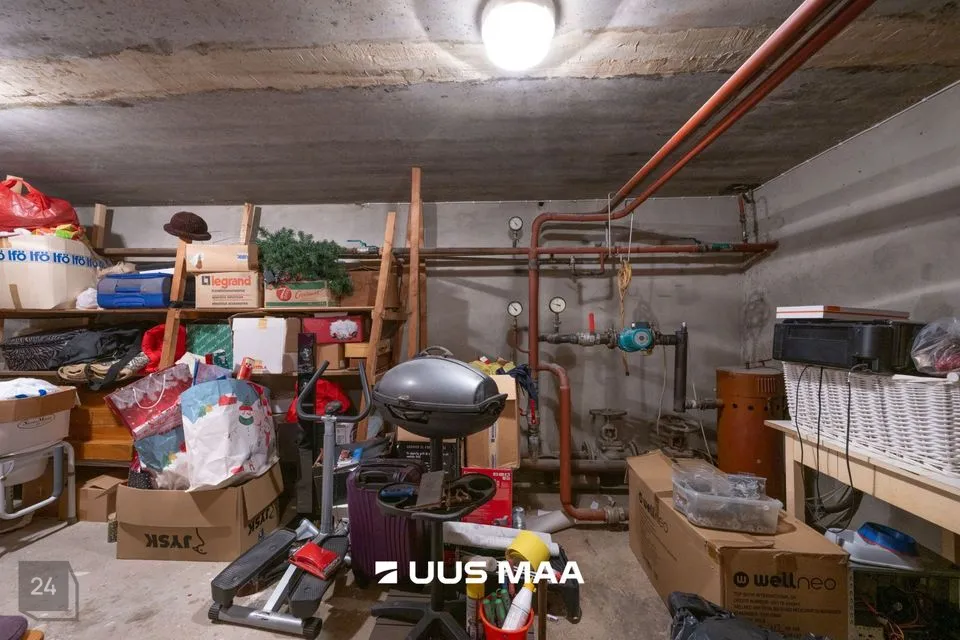 Keldrikorrus on loodud praktilisust silmas pidades – seal on majapidamisruum ja panipaigad, kuhu mahub kõik see, mida igapäevaselt silma all ei soovi hoida. Kodu juurde kuulub ka garaaž ja väline panipaik, mis lisavad mugavust.