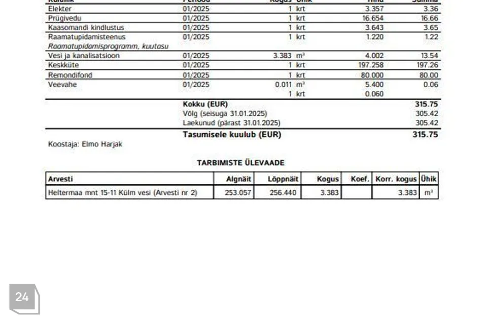 Ridaelamu ülalpidamiskulud on mõistlikud, jäädes suvel 200€ juurde ja talvel 300€ kanti (näidised arvetest on lisatud galeriisse)