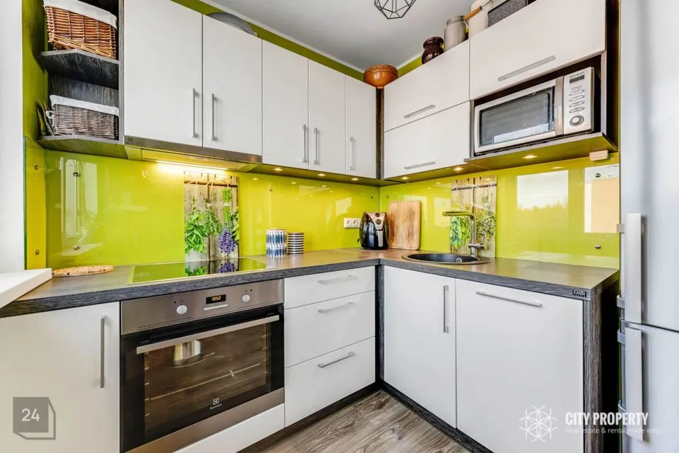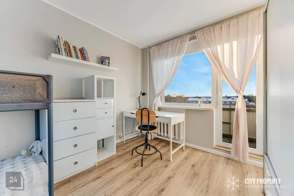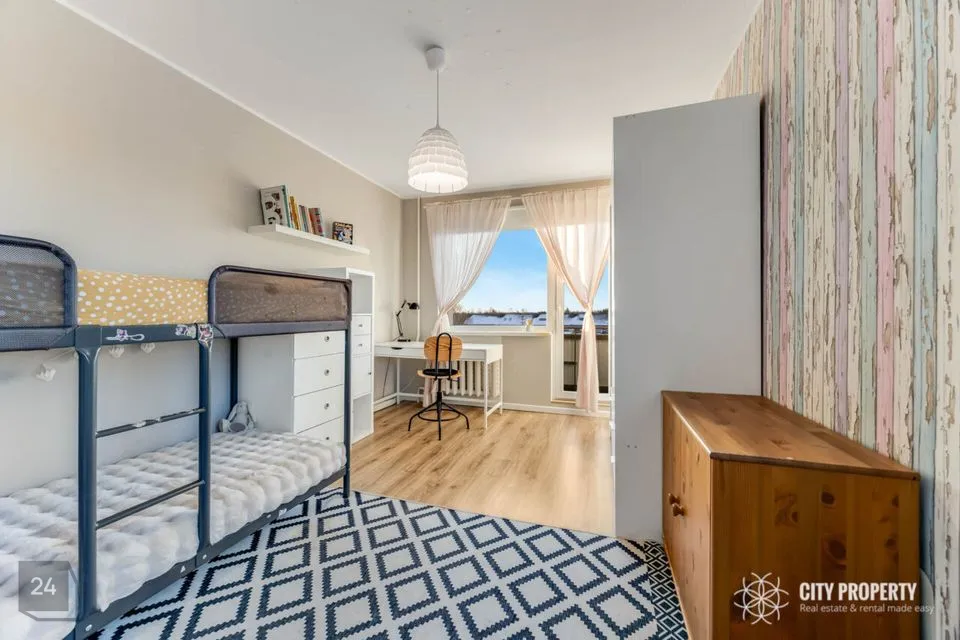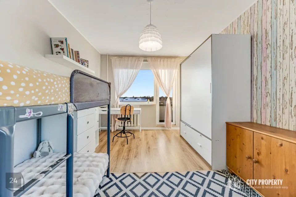 See 3-toaline korter asub 5-kordse maja neljandal korrusel. Korter on läbi maja planeeringuga, kust avanevad avarad vaated nii maja ette kui ka taha ning ulatuvad nii kaugele, et näha on Tallinna siluetti. Kodu koosseisu kuuluvad: 2 magamistuba (millest ühel on pääs rõdule), elutuba, avatud köök, esik ja ühendatud wc- ja vannituba. Kööki on paigaldatud köögimööbel koos tehnikaga (keraamiline pliit, külmkapp ja nõudepesumasin).