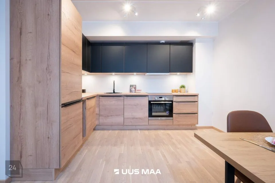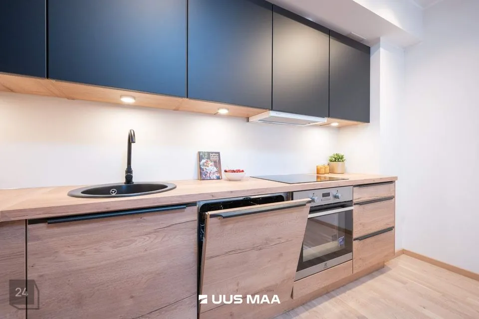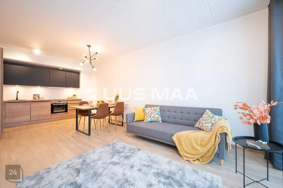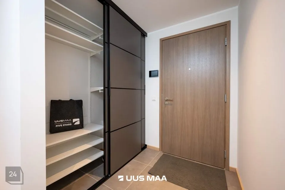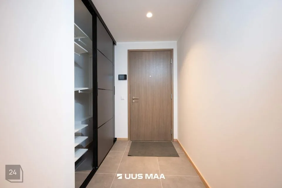 Sisenedes korterisse astud esikusse, kus avarad garderoobikapid hoiavad kogu pere jalatsid ja välisriided korras. Suure aknaga elutuba koos avatud köögiga pakub avarust ja valgusküllust, kust pääseb ka 7,6 ruutmeetrisele rõdule. Ideaalne koht nautida kohvi hommikupäikeses! Köögis on eritellimusel valminud mööbel ja kvaliteetne integreeritud köögitehnika: külmkapp, nõudepesumasin, ahi ja pliit.