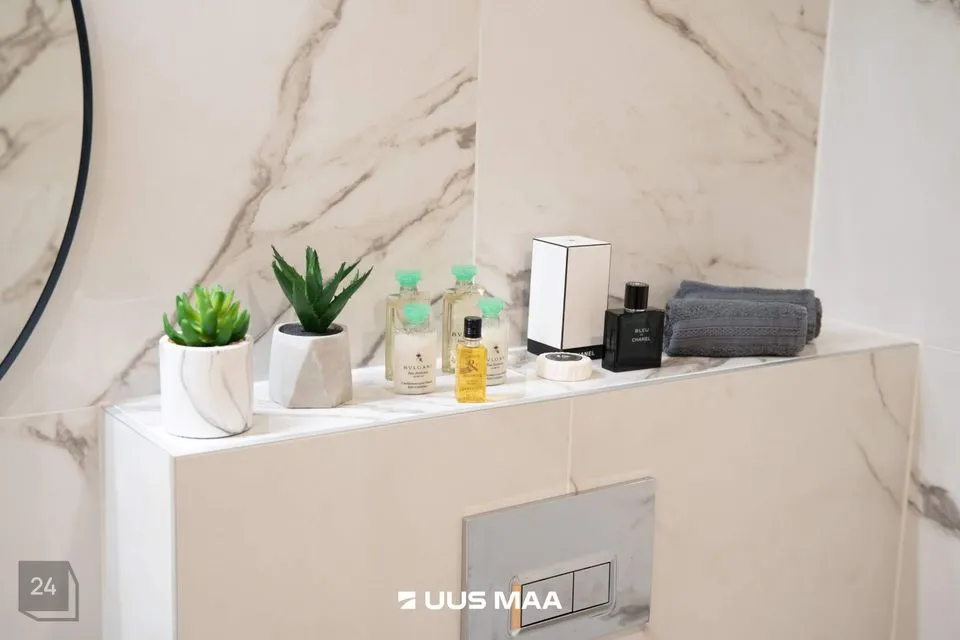 See hubane kodu asub Kastanikodu arenduse teises etapis ja selle siseviimistlus on valitud MARMOR paketi järgi, mis annab korterile stiilse ja kaasaegse ilme. Korter on varustatud LED valgustusega ning signalisatsiooni valmidusega. Keskne fonosüsteem tagab turvalise juurdepääsu trepikotta.