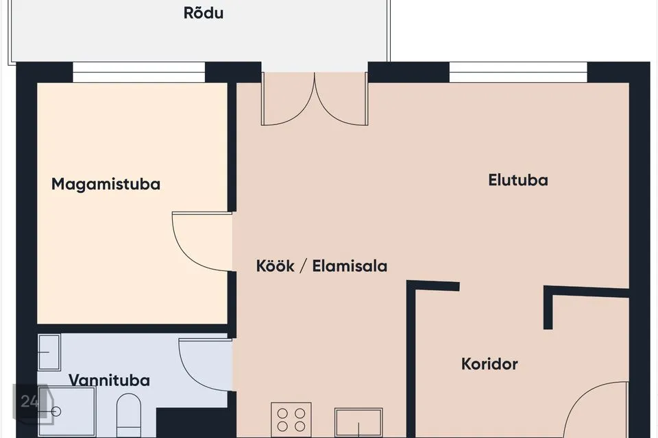 KORTERIS on avar elutuba koos köögiga, magamistuba hommikupäikese poole avanevate akendega, plaaditud vannituba elektrilise põrandaküttega ning esik kahe suure sisseehitatud garderoobikapiga. Lisaks kuulub korteri juurde suur 7,8 m² rõdu, kust avaneb rahulik hoovivaade – ideaalne koht päeva alustamiseks või lõõgastumiseks.