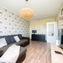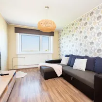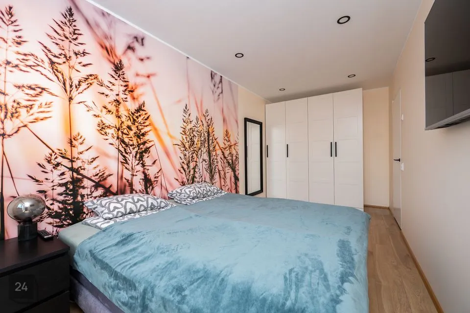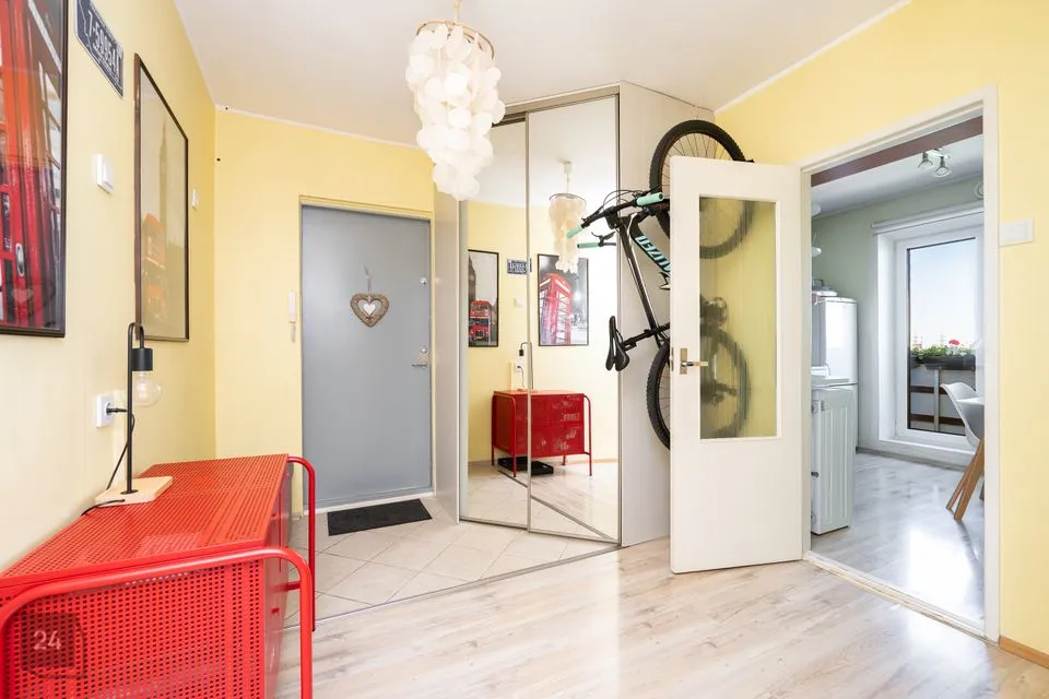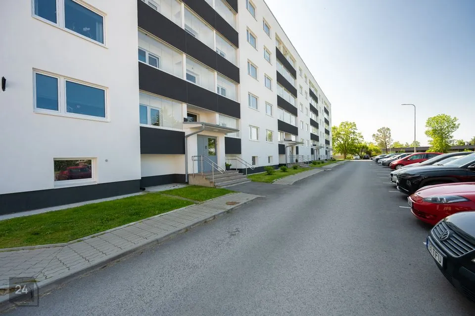 Tere tulemast oma uude potentsiaalsesse koju! Korterisse sisenedes jõuad avarasse esikusse. Vasakule poole, vaatega maja ette jääb köök - köögis on kogu vajalik tehnika ja söögilaud kolme tooliga. Köögist pääseb ka rõdule, kus saab nautida imelisi päikeseloojanguid. Esikust pääseb edasi elutuppa, kust samuti avaneb vaade maja ette. Esikust edasi liikudes jõuame koridori, kust pääseb nii vannituppa kui ka WC-sse. Koridori lõpus asuvad kaks magamistuba, millest suuremast pääseb teisele rõdule, kust avaneb vaade maja taha.
