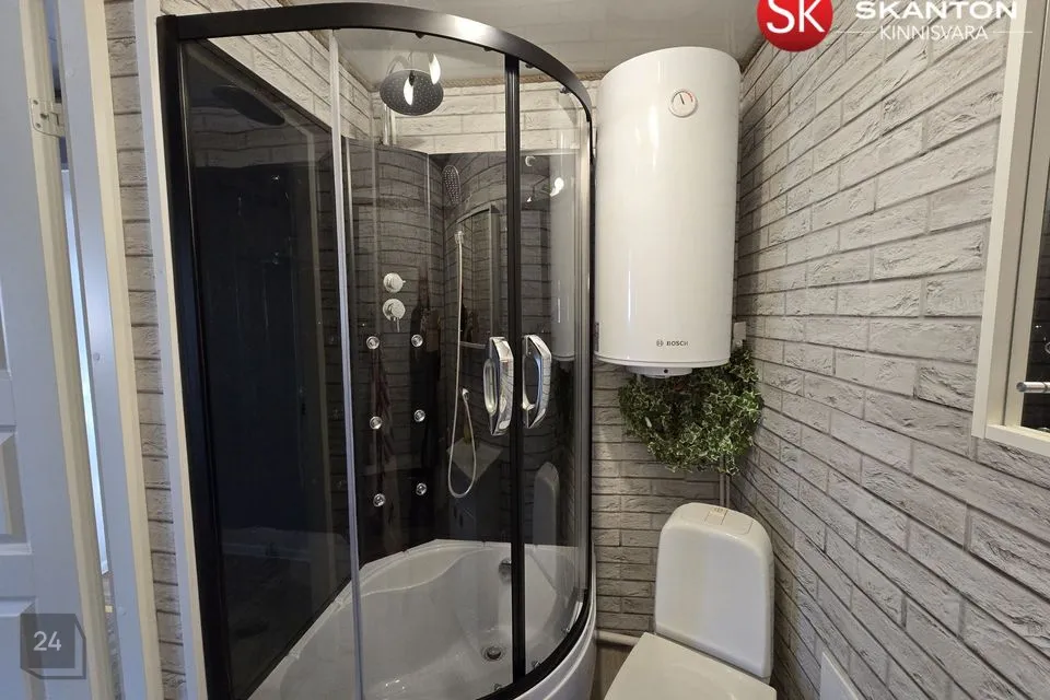 Vannitoas on elektriradiaator. Soe vesi on lahendatud elektriboileriga.