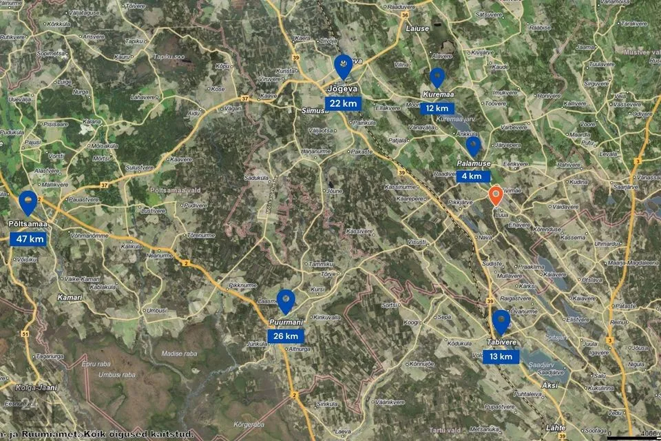 Kaugused: Palamuse 4km, Jõgeva 22km, Kuremaa, 12km, Tabivere 13km, Tartu 47km.