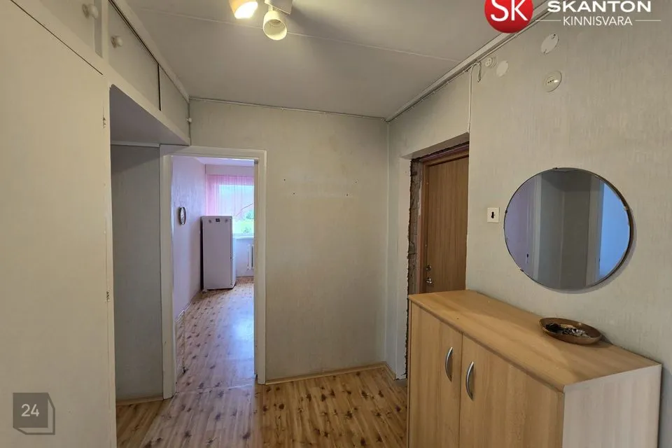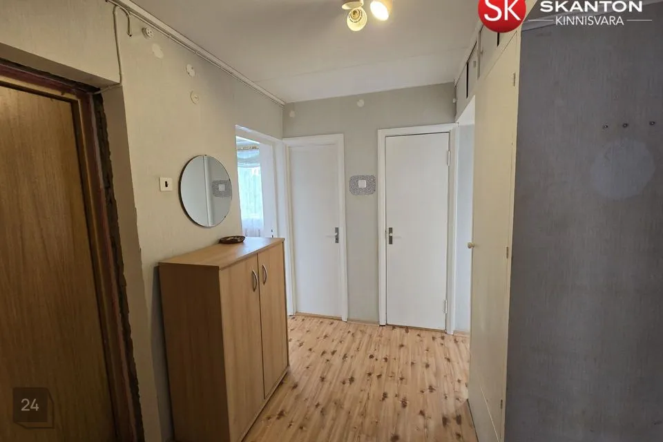 Planeering: avar esik, köök, elutuba, 2 magamistuba, eraldi asuvad wc ja vannituba. Põrandad puitplaaditud ja värvitud. Korteris on pakkettaknad ja puidust uksed. Korteril on ees uus tuletõkke uks.