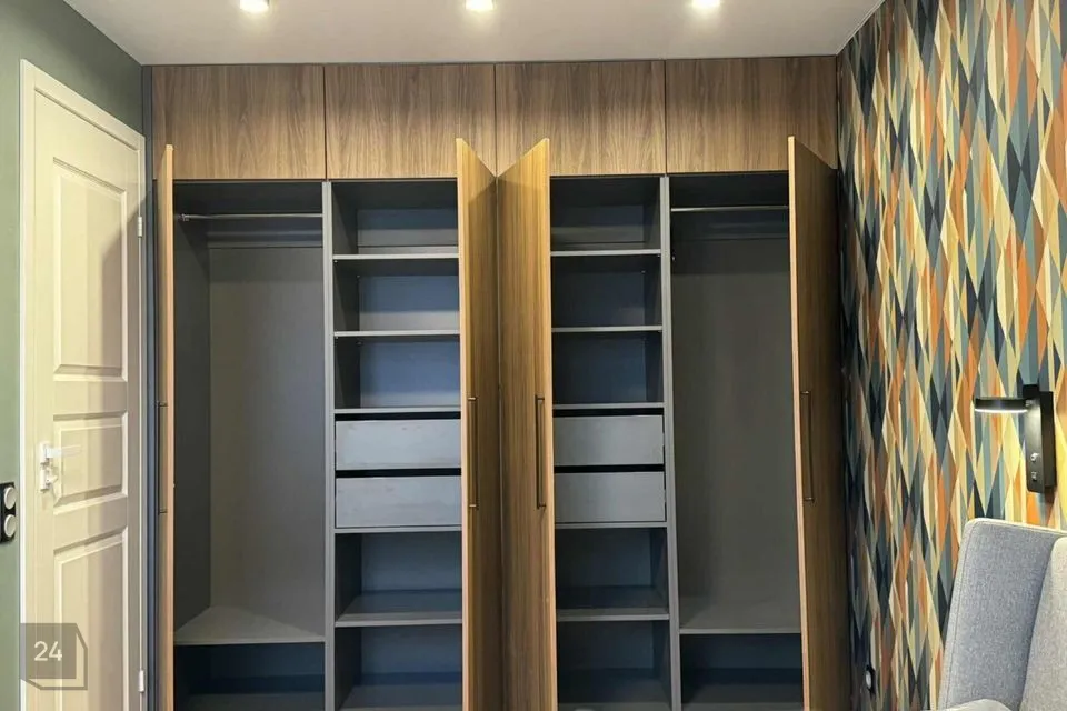 Korteris kõik seinad on värvitud rahuliku helehalli tooniga, välja arvatud magamistuba - seal on seinad tumerohelised, kuna keha magab paremini ja taastub täielikus pimeduses, lisaks on magamistoa akendele paigaldatud pimendavad rulood, mis ei lase päikesevalgust sisse.