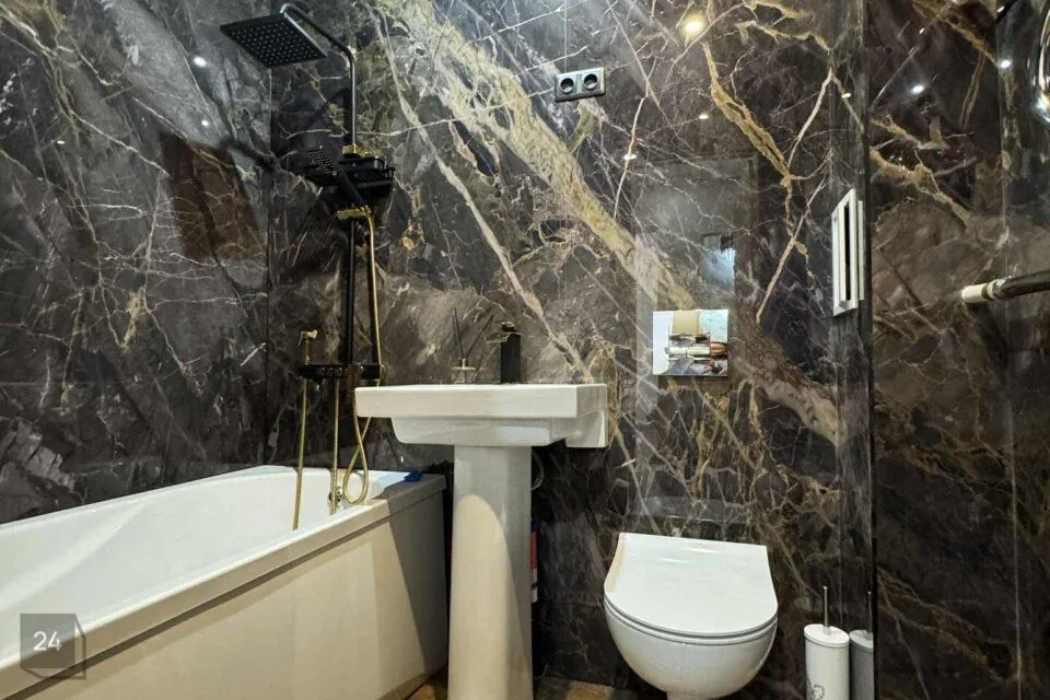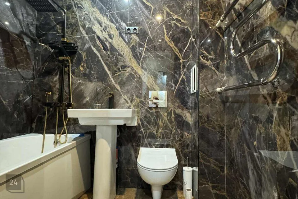 Korteri aknad plastpakett, põrandal on laminaat, vannituba plaaditud keraamilise plaadiga.