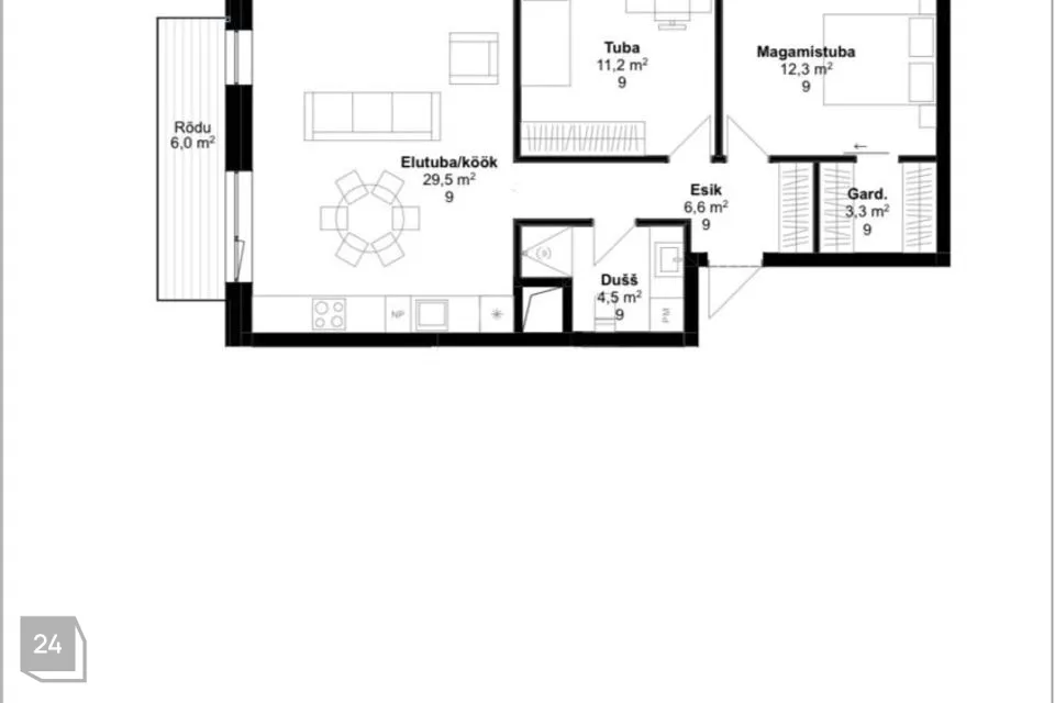 Paruni 19 korter 9 on teisel korrusel asuv kahe magamistoaga korter. Magamistoad on suurustega 11,2 m2 ja 12,3 m2. Suurema magamistoa juures on lisaks veel eraldi garderoob suurusega 3,3 m2. Elutuba/köök on suurusega 29,5 m2. Korteril on avar rõdu suurusega 6 m2, mis asub õhtupäikese poole.
