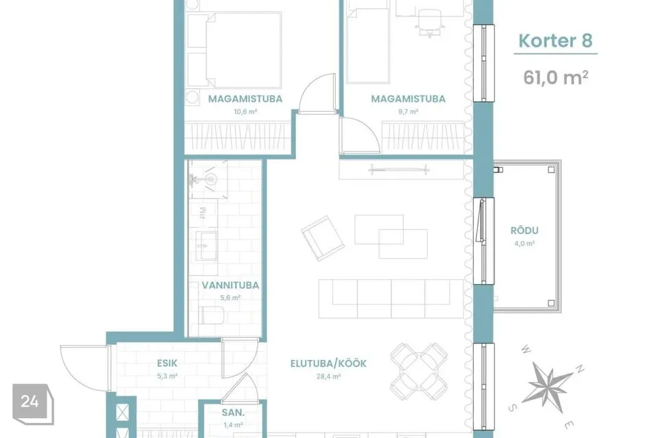 *Piltidel on kuvatud juba valminud mööbleeritud 2-toalist näidiskorterit