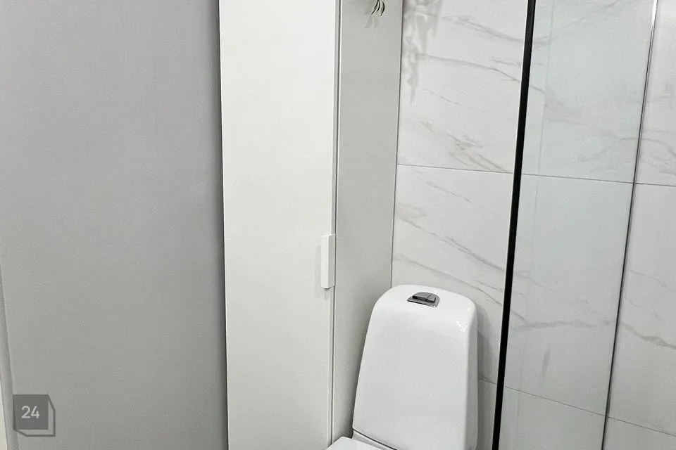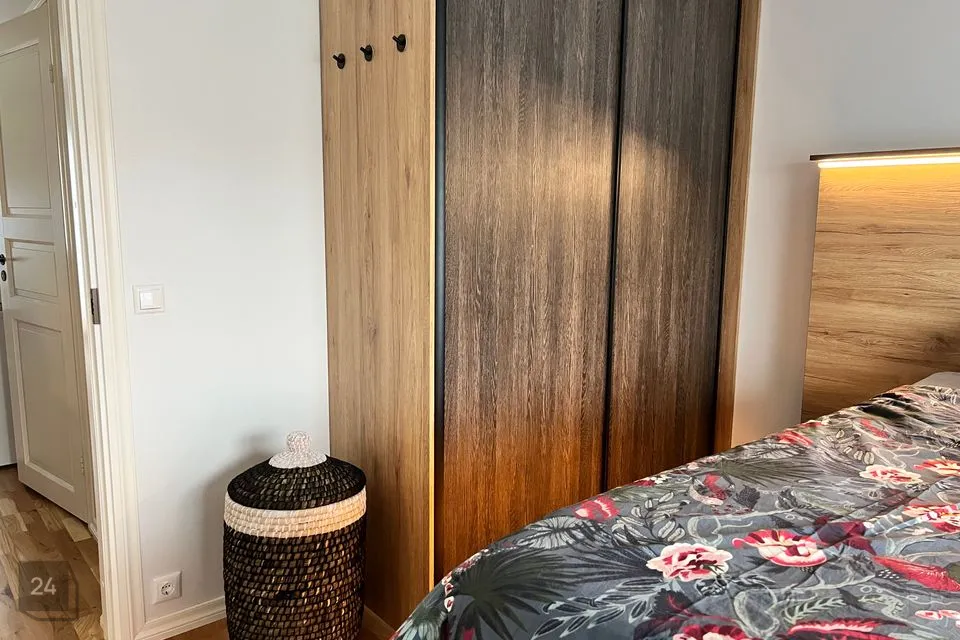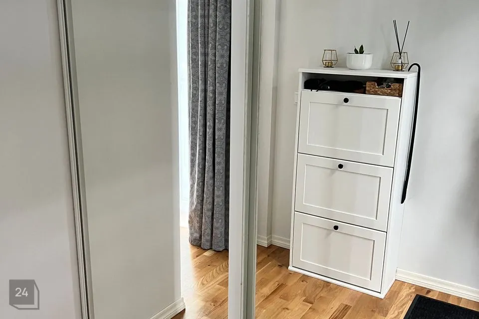 - В прихожей встроенный шкаф-гардероб с раздвижными дверями