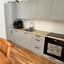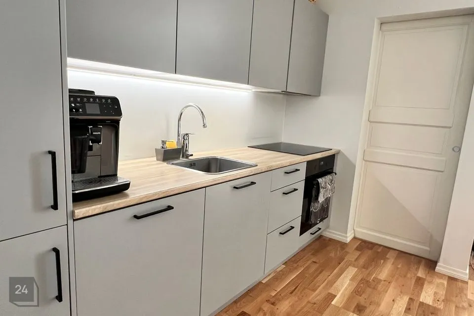 - Качественная кухонная мебель с встроенной техникой (индукционная плита, духовка, посудомоечная машина, холодильник, вытяжка)
