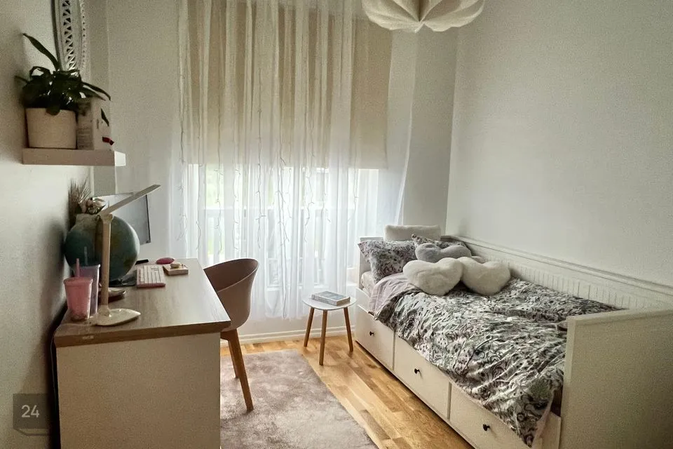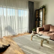 - Светлая и солнечная квартира: утреннее солнце в спальнях, послеобеденное — в гостиной и на балконе