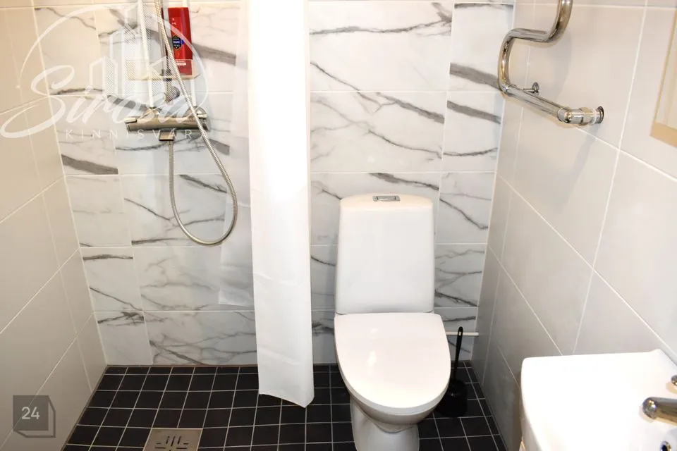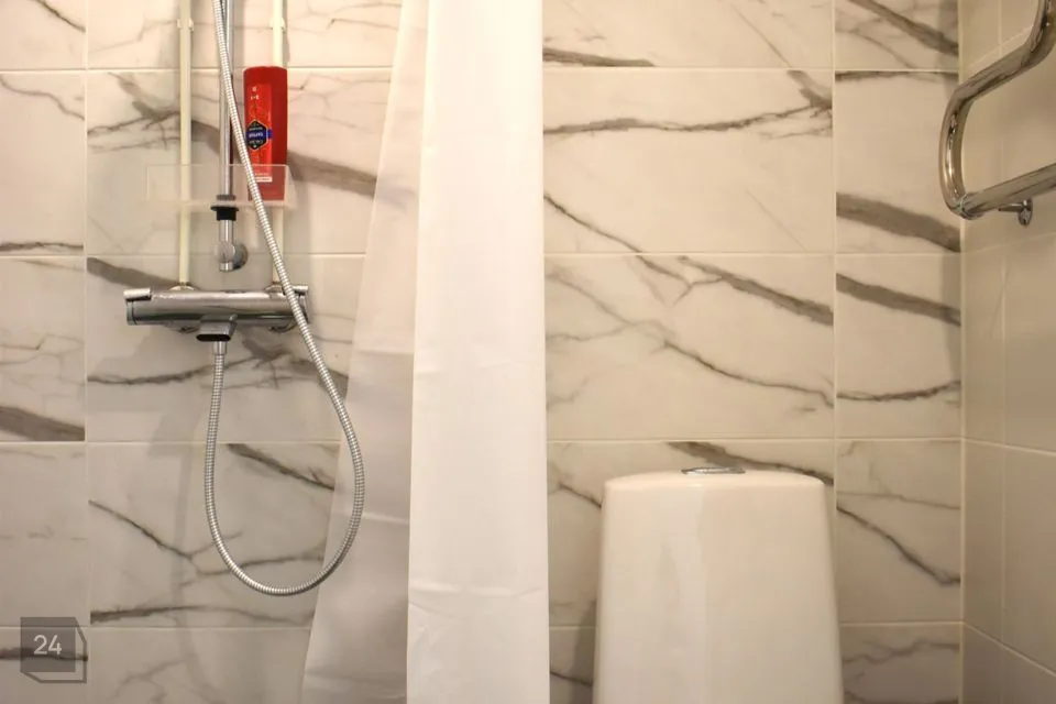 Dušširuum ja WC on ühine, selles majas on tsentraalne soe vesi. Kogu korteris on vahetatud vee- ja kanalisatsioonitorustik, s.h maja üldpüstak. Vannitoas ka elektriline põrandaküte ning uus siugtoru on aastaringselt kuum (ühenduses maja soojaveetorustikuga).