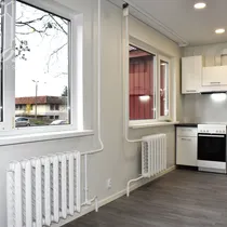 Sisemised fotod peatselt lisamisel - hetkel korteris viimased viimistlustööd. Värvilahendus on hele, põhjamaine. Köögimööbel valge, vannitoas kasutatud heledaid toone, põrandal hall plaat.
