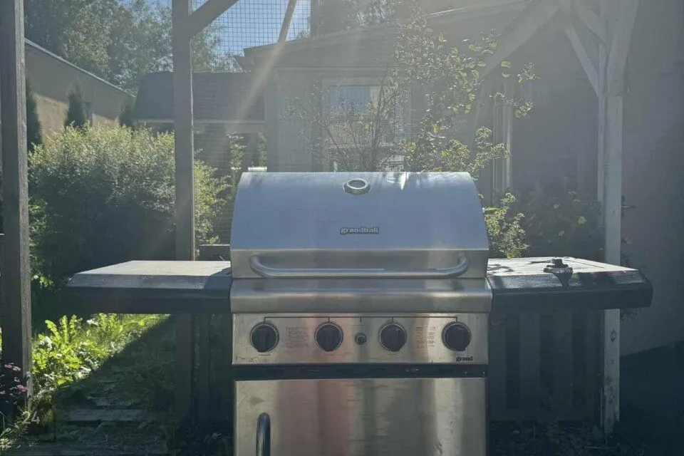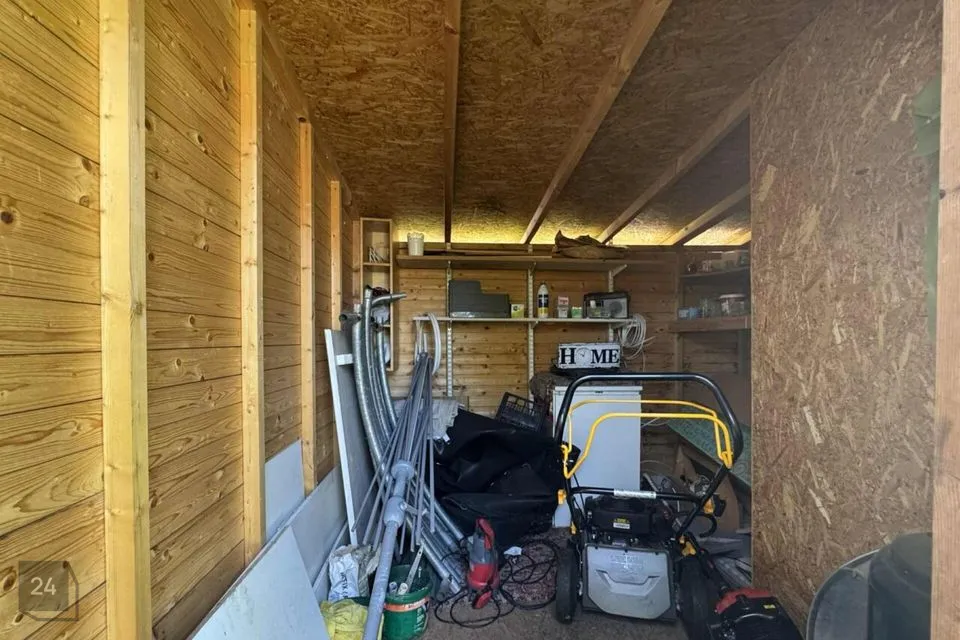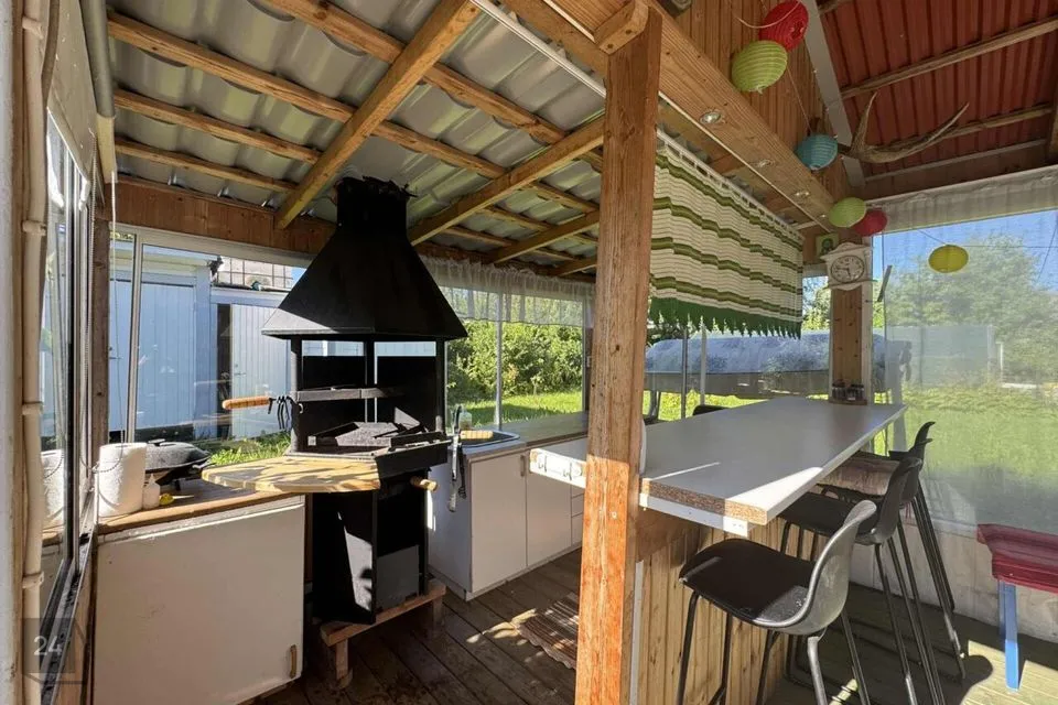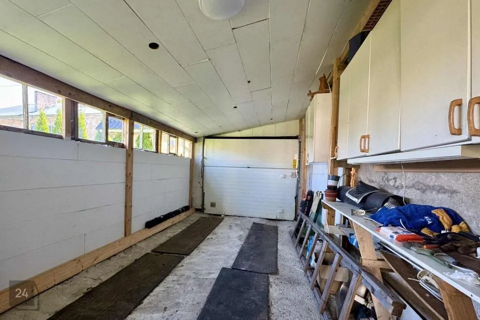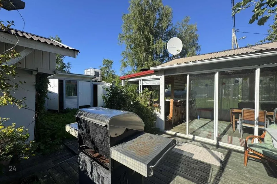 Maja taga asuvad kuur, garaaž, grillimiskoht ja aed.