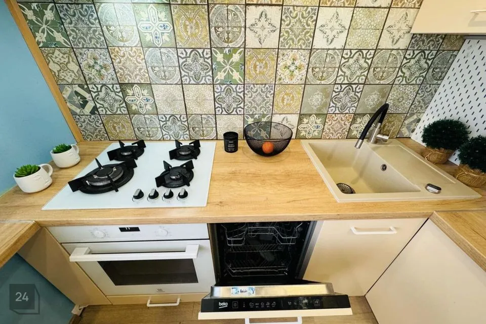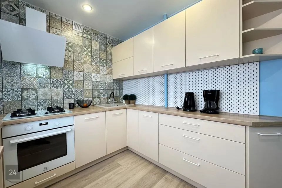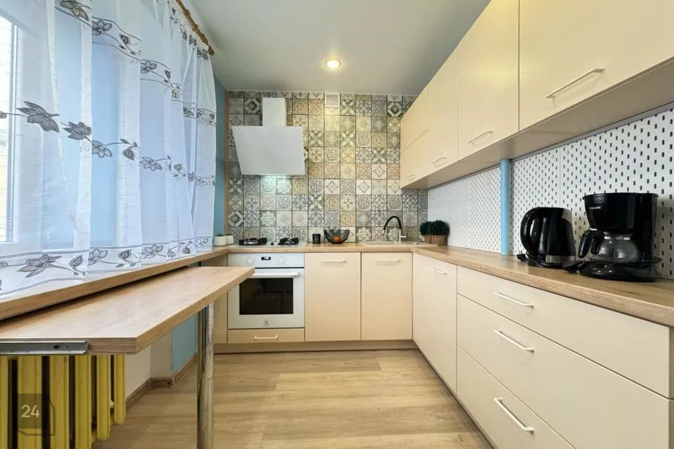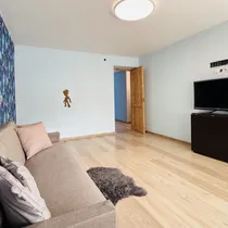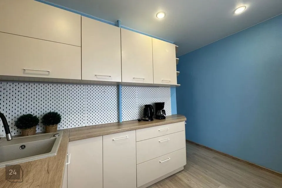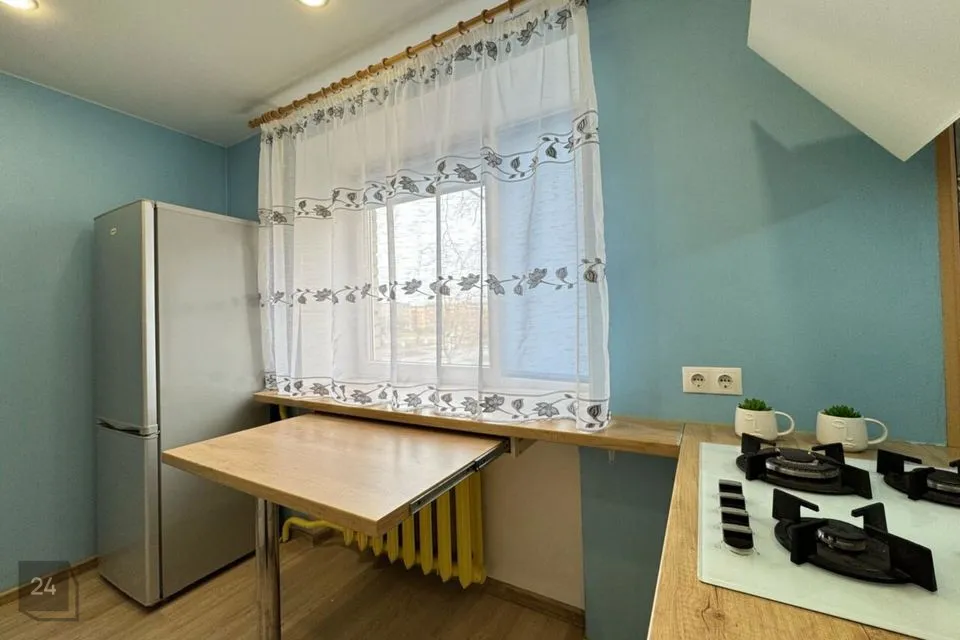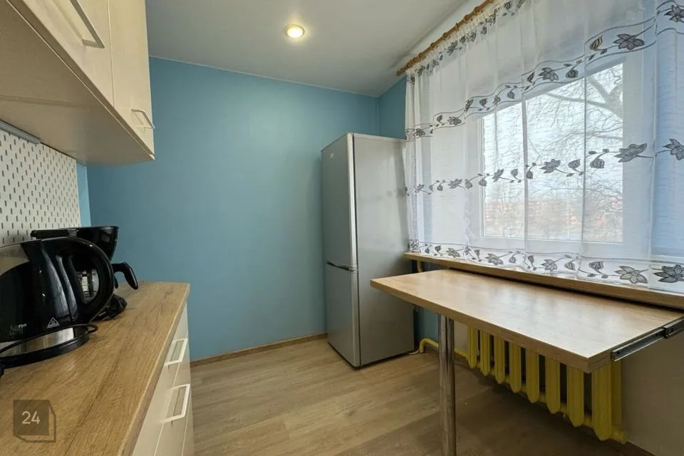 Korteris põrandal on laminaat. Köögis on ehitatud köögimööbel tehnikaga (keraamiline gaasiipliit, õhupuhasti, ahi ja pesumasin).