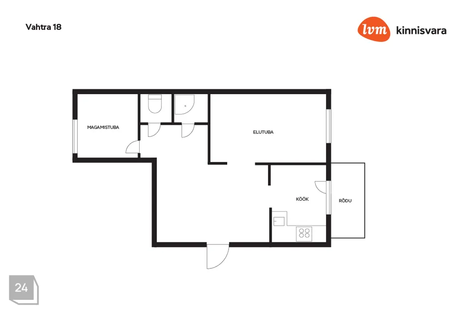 Korteri koosseisu kuuluvad avar esik; köök, millest avaneb pääs rõdule; elutuba, magamistuba; eraldi WC ja dušširuum.