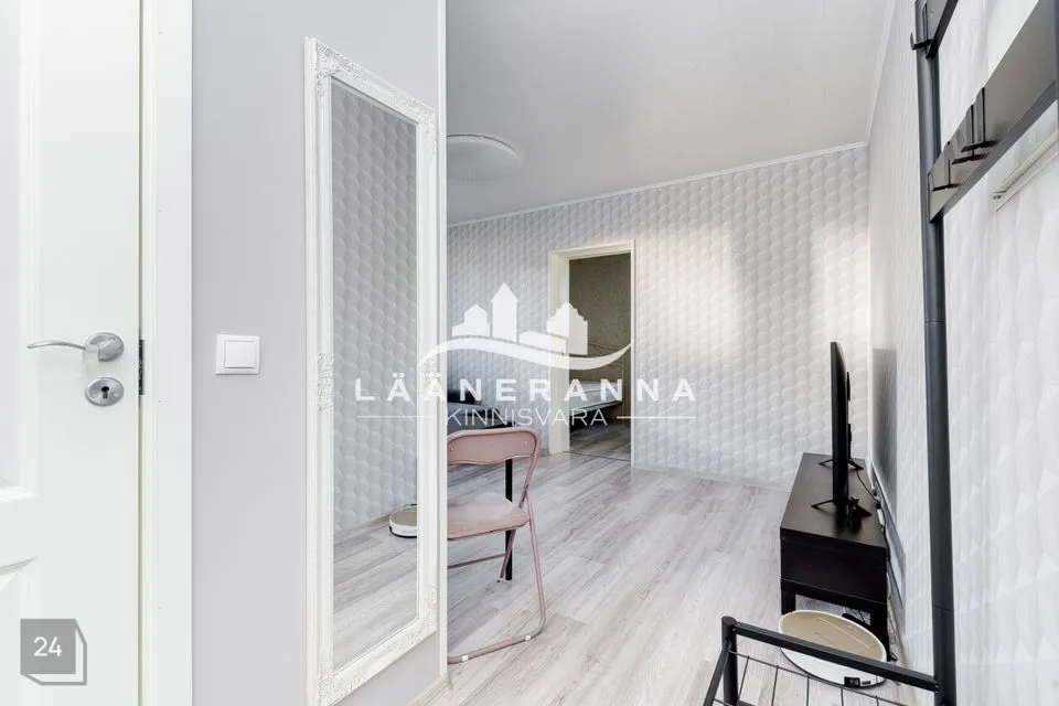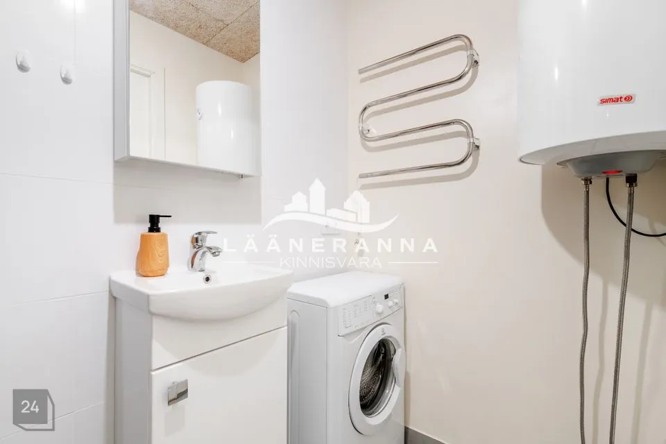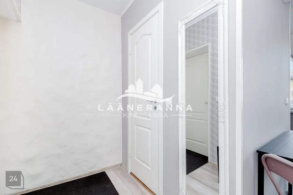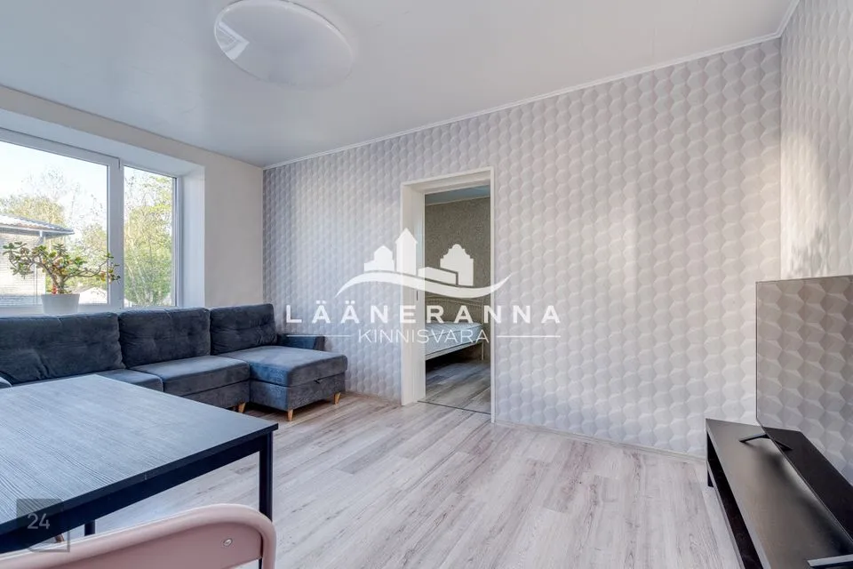 Müügis olev korter asub 2 korruselise maja 2-l korrusel, aknad avanevad maja külgmisele ja maja tagusele alale. Korterisse sisenedes jõuab esikusse, kust otse pääseba wc/vannituppa, liikudes paremale avaneb avar elutuba, kust edasi. saab liikuda avatud köögiossa ning magamistuppa. Korter on värskelt läbinud väga põhjaliu renoveerimise. Siseviimistluses on eluruumide osas valdavalt heledad toonid ja tapeeditud seinad. Laed värvitud ning põrandatel laminaat. WC-s ja vannitoas nii seinad kui põrand plaaditud. Korteris plastikaknad. Korterit hoiab soojana soojuspump.
